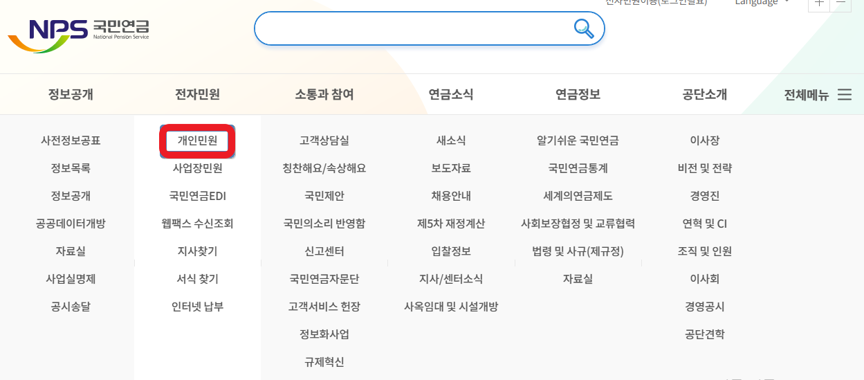 1. 국민연금공단 공식 홈페이지에 접속합니다.
